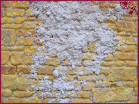 Most következik a fúgák kitöltése. Ehhez nemes egyszerűséggel csemperagasztót vettem igénybe. Egy keveset szárazon rákanalaztam a kőfalra, majd szépen belesöpörtem a mélyedésekbe. Utána az egészet fixálhatjuk lakkspray-vel.